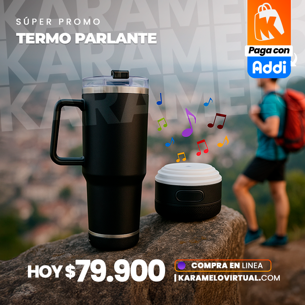 Disfruta de tus bebidas frías o calientes mientras escuchas música con el Termo Parlante Tipo Stanley. Su diseño compacto y práctico, con pitillo incluido, lo hace perfecto para llevar a todos lados. ¡Mantén tu bebida a la temperatura adecuada y disfruta de tu música favorita en cualquier momento y lugar!